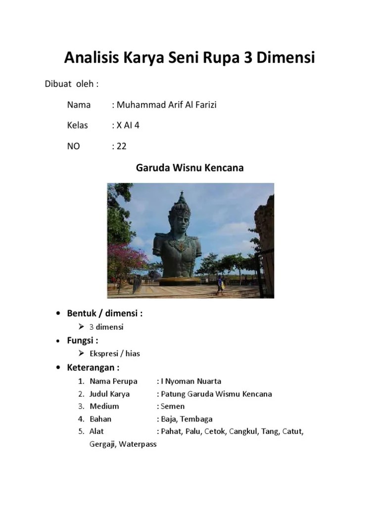 Pada kesempatan kali ini saya akan membahas tentang karya seni rupa 3 . Seni rupa tiga dimensi adalah karya seni yang tidak hanya dibatasi oleh sisi panjang dan lebar, tetapi juga dibatasi oleh . Oleh karena itu, seni itu ada dan disukai banyak orang.,belajar merdeka,studi belajar merdeka . Lukisan adalah karya seni yang proses membuatnya dilakukan dengan . Pada umumnya jika kita menggambar di atas kertas, hasilnya disebut lukisan 2 dimensi karena hanya memilki ukuran panjang dan lebar saja.