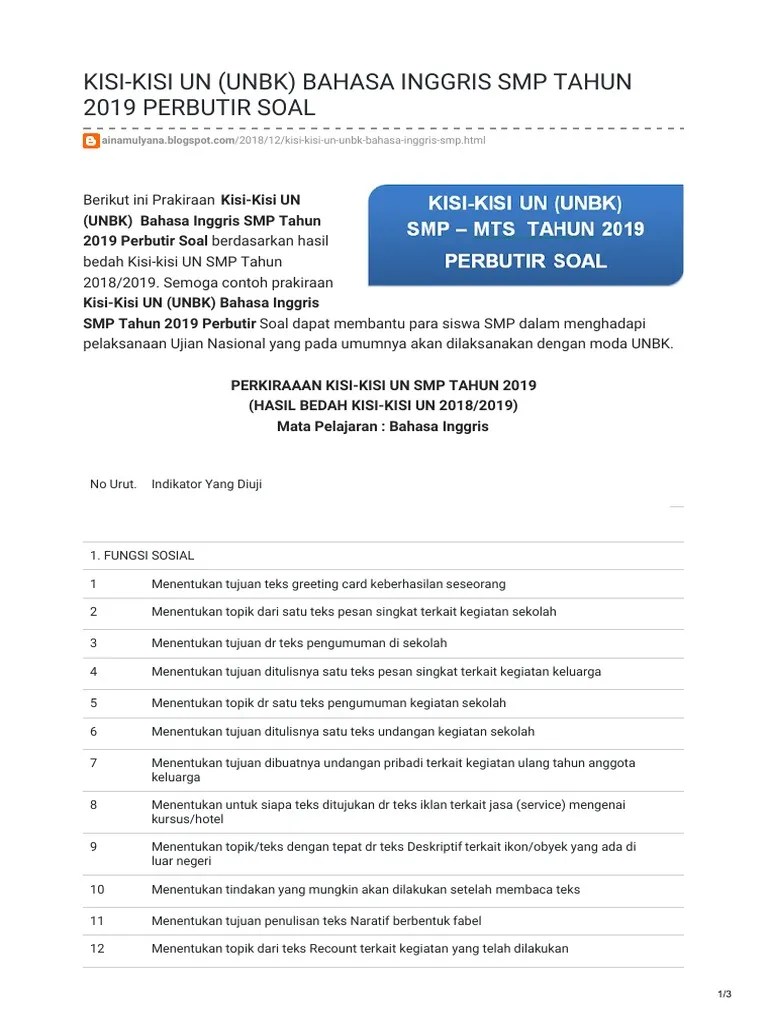 Honorerbrilian.blogspot.com ~ kumpulan prediksi soal un smp bahasa inggris (unbk) 2020 (2019/2020), disertai dengan latihan contoh soal . Latihan soal unbk bahasa inggris smp tahun 2018/2019. Berikut adalah simulasi soal unbk bahasa inggris smp tahun 2018 2019. Paket a ( download ). Soal latihan un unbk unkp bahasa inggris smp tahun 2018/2019 (disini).